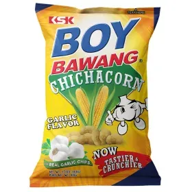 A ChiChaCorn Garlic Flavor a Fülöp-szigetek legendás utcai snackje, amely ropogósra pörkölt kukoricaszemekből készül, és gazdagon fűszerezett fokhagymaporral ízesítik. Minden falatban ott az intenzív, aromás íz, amely azonnal elrepít a trópusi utcák pezsgő hangulatába.