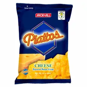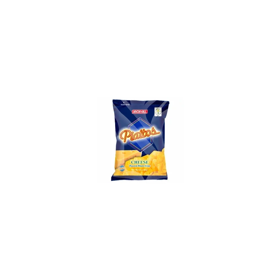 A Piattos Cheese Flavor egy klasszikus filippínó burgonyasnack, amelyet a legendás Jack ’n Jill márka gyárt. A Piattos chipsek különlegessége a hatszögletű forma és a vékony, extra ropogós textúra, amit a krémes, enyhén édeskés cheddar sajtaroma tesz ellenállhatatlanná.