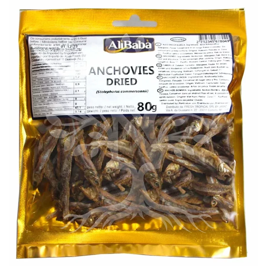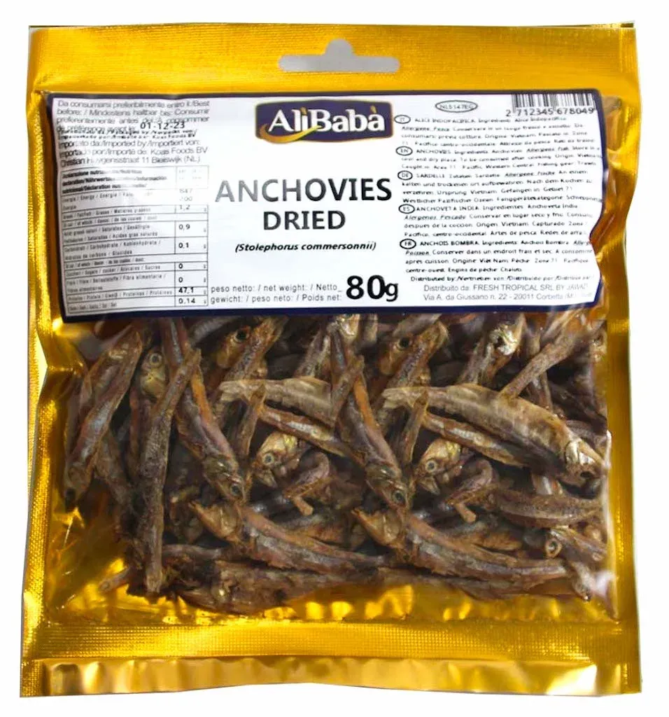 A Dried Anchovy • Dilis az ázsiai konyha klasszikusa: apró, sózott és szárított halak, amelyek intenzíven karakteres tengeri ízzel gazdagítják az ételeket. Ezek a ropogós ropogós falatkák nemcsak snackként hódítanak, hanem fantasztikus alapanyag levesekbe, pirított rizses ételekbe vagy salátákhoz.