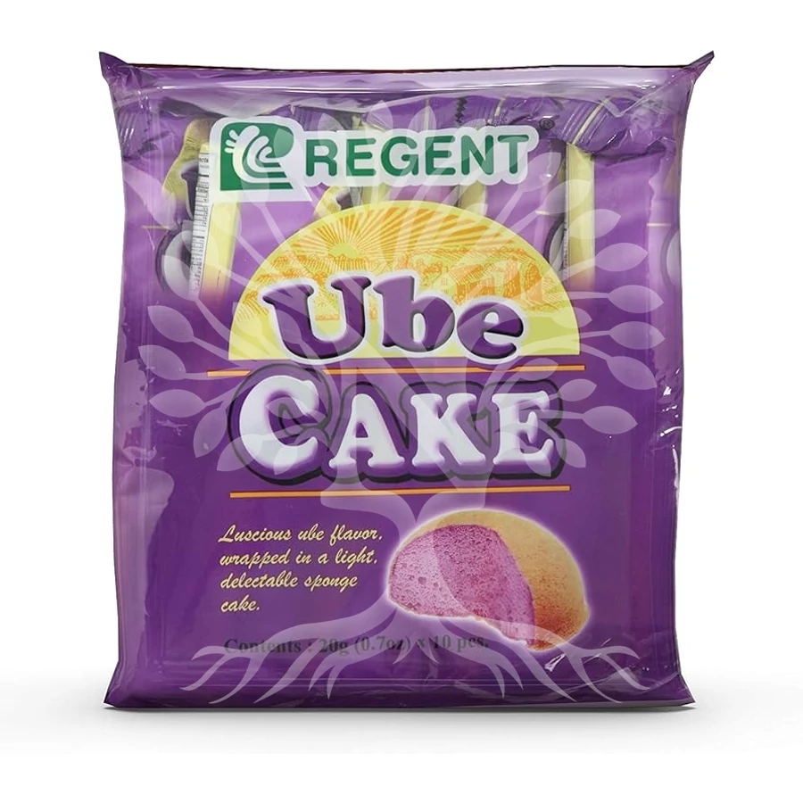 A Regent Ube Cake a Fülöp-szigetek egyik legkedveltebb desszertje, amely a klasszikus filippínó ube (lila jamgyökér) ízét ötvözi egy puha, szaftos mini piskótában. Az ube a Fülöp-szigeteki konyha egyik legikonikusabb alapanyaga – természetesen édes, diós ízvilága és lenyűgöző lila színe miatt nemcsak finom, hanem látványos is.